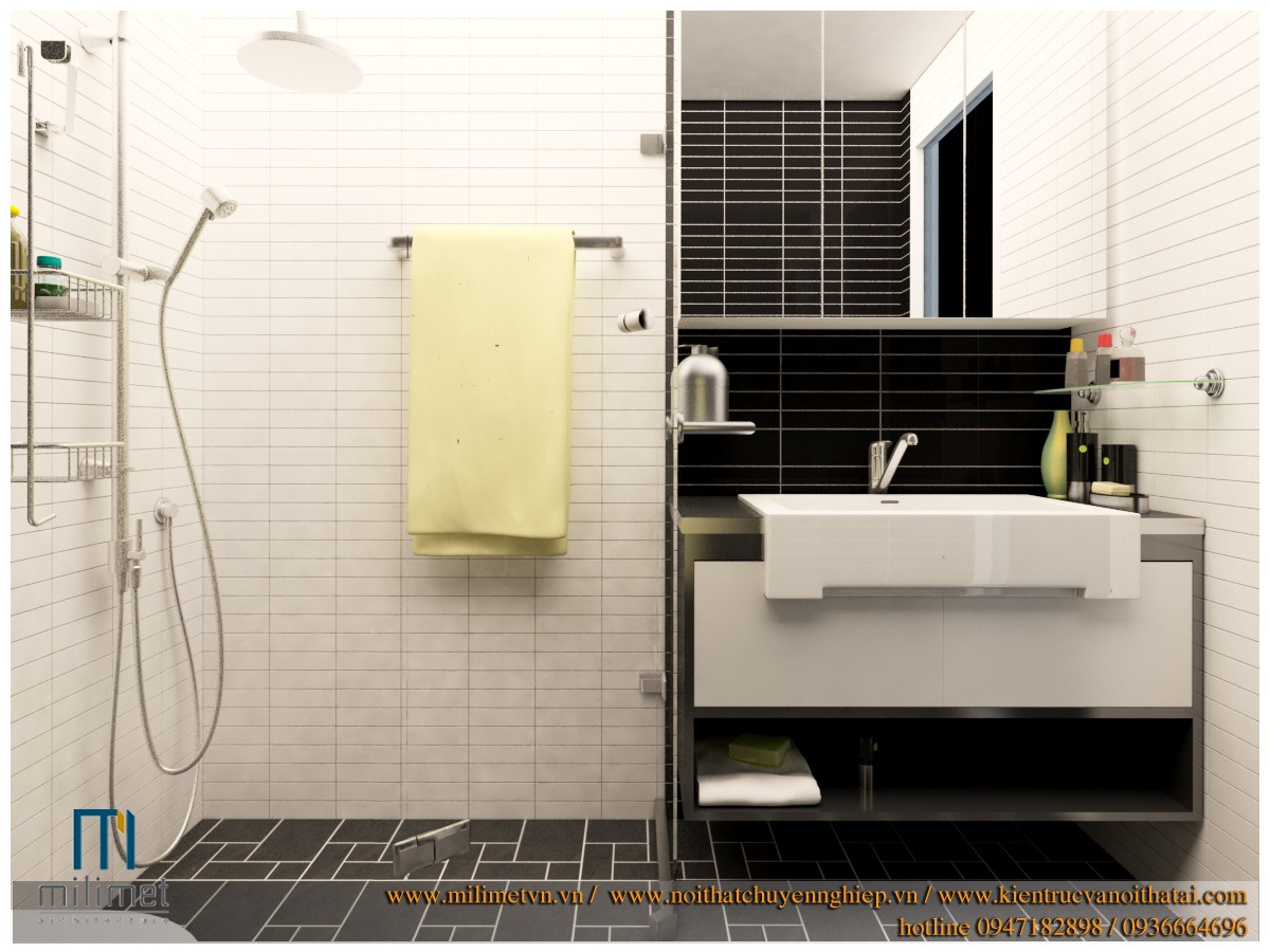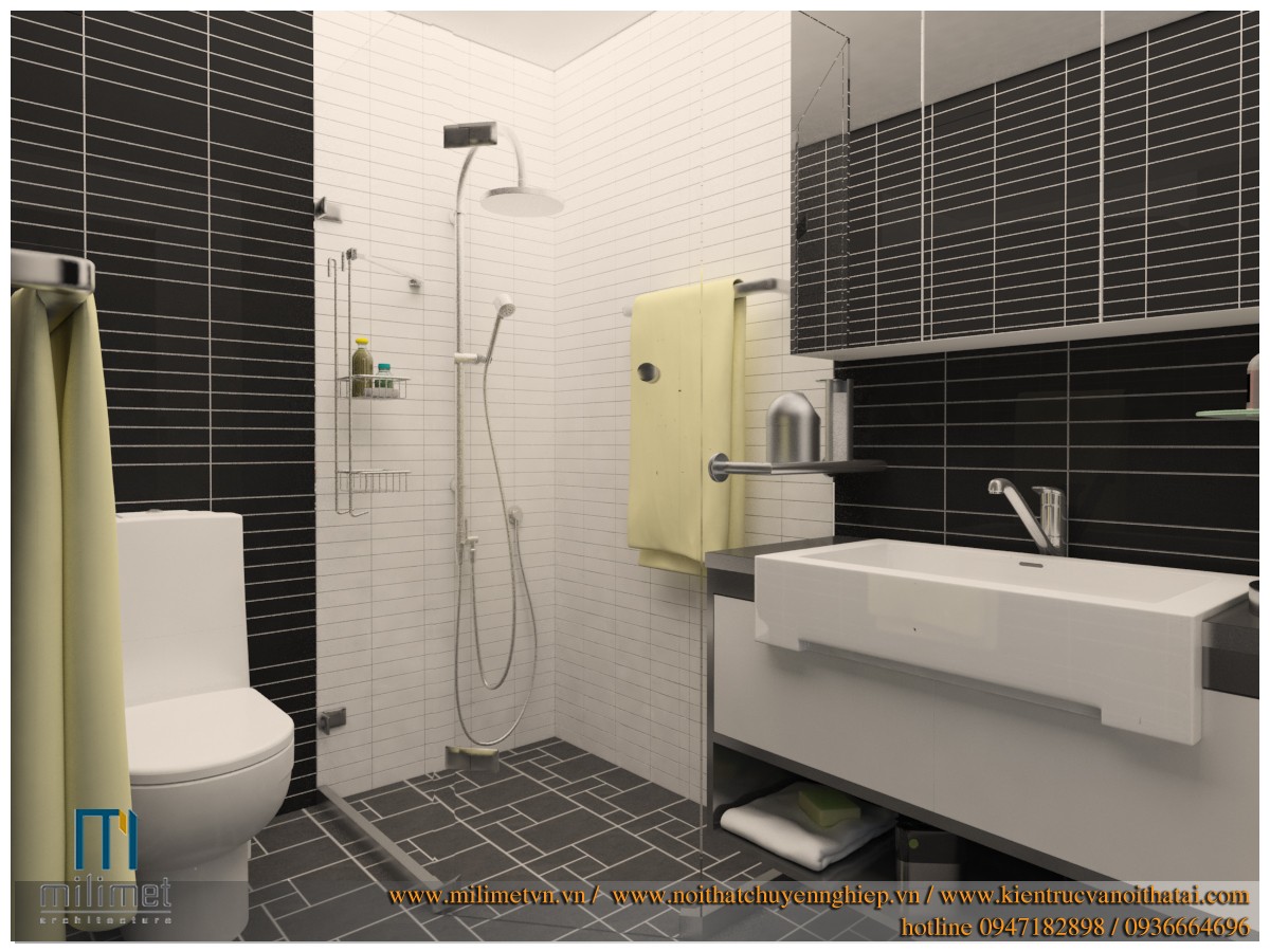 Khu vệ sinh: Sự kết hợp hài hòa giữa 2 gam màu đen trắng giúp khu vệ sinh trông sạch sẽ, rộng rãi hơn.