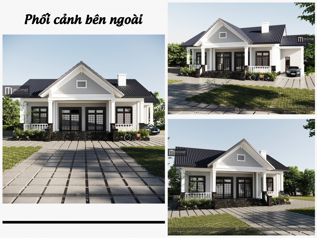 Với ý tưởng của anh, chúng tôi mang đến một ngôi nhà mái ngói, bậc thềm cao giống như những ngôi nhà thuần Việt. Nhưng vẫn có sự nổi bật hiện đại bằng cách dùng mái ngói Thái, cửa nhà to rộng hơn và đều sử dụng cửa kính.